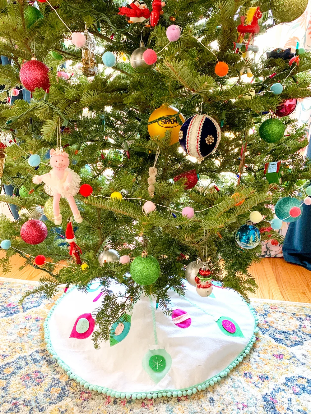 Diy Retro Tree Skirt Redesigned Classics from images.squarespace-cdn.com 4.8 out of 5 stars. Vintage christmas sheet music tree skirt. What figures can you find on vintage christmas tree skirts? Get it as soon as fri, aug 13. Did you know that tree skirts were originally designed to catch the wax dripping off from the candles placed on the tree? 4.5 out of 5 stars. Produkte aus der ganzen welt. Weihnachtliches geschirr bei torquato bestellen.
